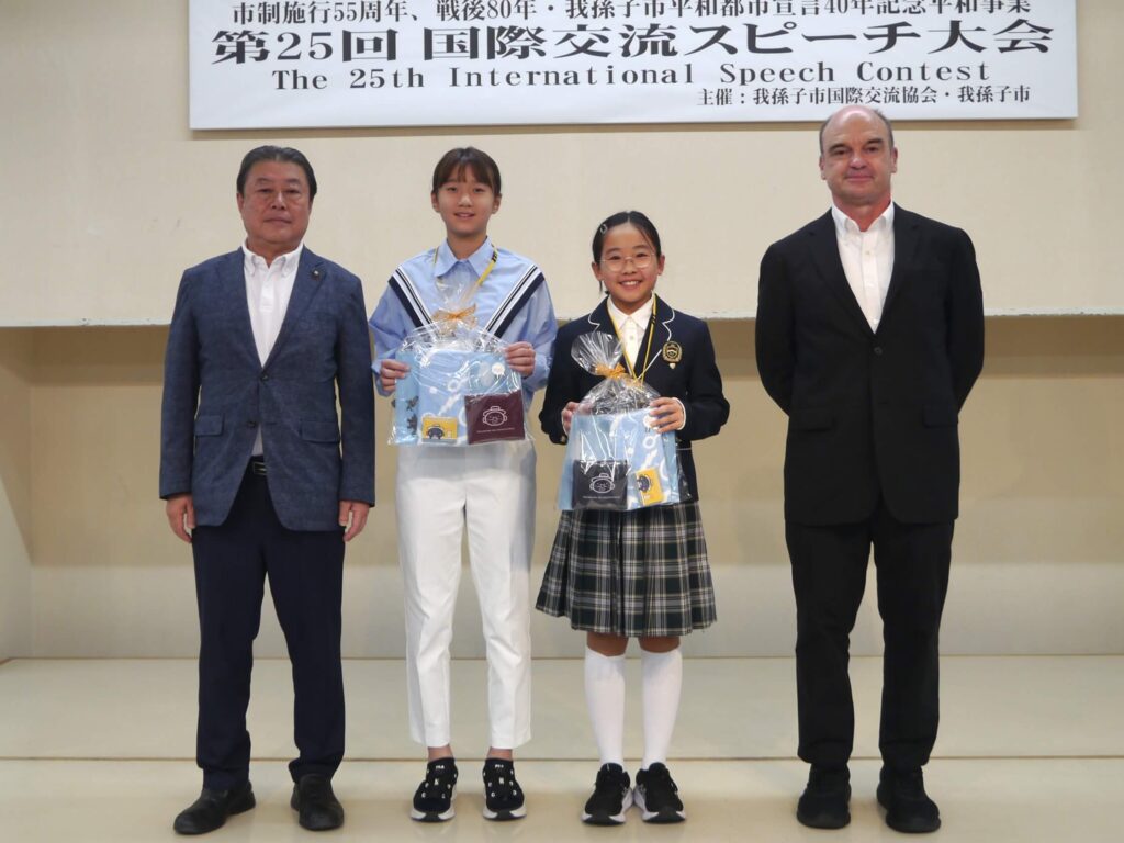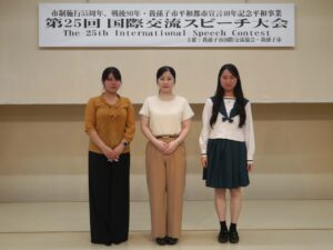 今年度の国際交流スピーチ大会は、市制施行55周年、戦後80年、そして我孫子市平和都市宣言40周年の協賛事業として開催されました。